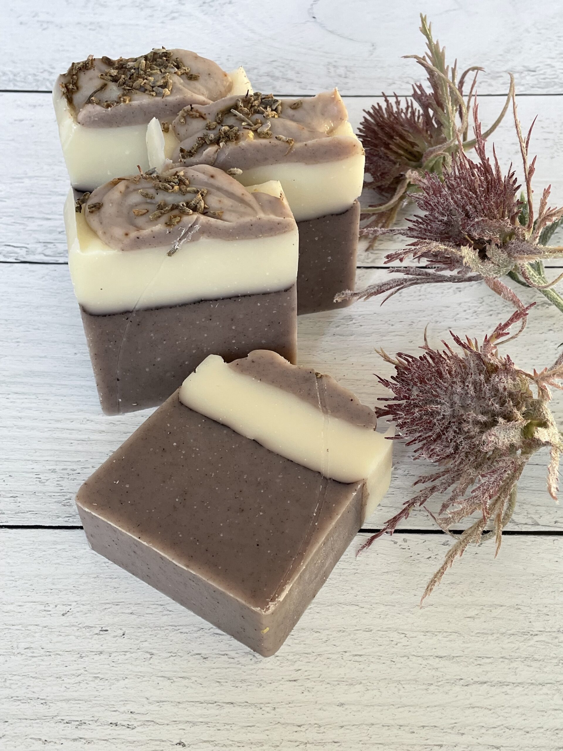 Who can resist this beautiful mauve coloured soap with the soothing fragrance of lavender, peppermint and patchouli. Alkanet Root Powder infused in Olive oil, blends with Kaolin clay to provide a naturally coloured two-layer soap. Divided with a light pencil line, the addition of Kaolin clay provides added skin cleansing benefits.